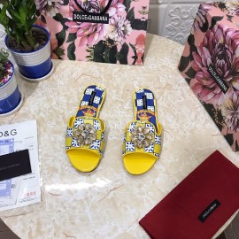 Dolce Gabbana Printed Cowhide Flat Heeled Slippers For Women Yellow