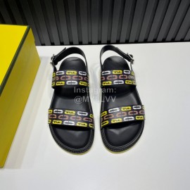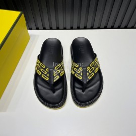 Fendi Printed Calf Leather Flip Flops For Men Yellow