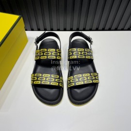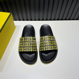 Fendi Printed Calf Leather Slippers For Men Yellow