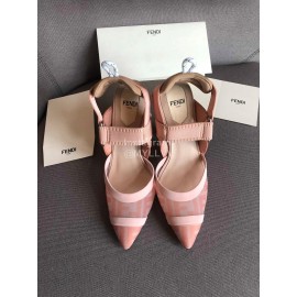 Fendi Fashion Pink Jacquard Ribbon Sheepskin High Heel Sandals For Women
