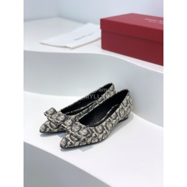 Ferragamo Viva Bow Sheepskin Pointed Ballet Shoes For Women Black