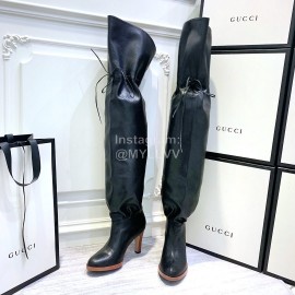 Gucci Black Leather High Heeled Boots For Women