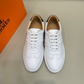 Hermes Fashion Calf Leather Casual Sneakers For Men White