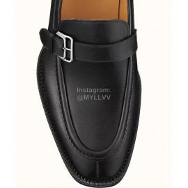 Hermes Belt Buckle Shape Leather Loafers For Men Black