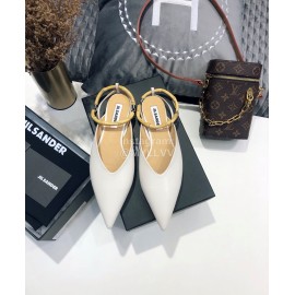 Jil Sander Spring Summer New Sheepskin Pointed Flat Sandals For Women White