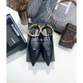 Jil Sander Spring Summer New Sheepskin Pointed Flat Sandals For Women Black