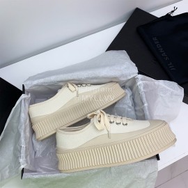 Jil Sander Thick Bottom Cowhide Canvas Shoes For Women White