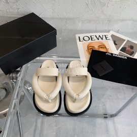 Jil Sander Summer Soft Leather Thick Soled Flip Flops For Women Beige
