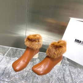Maison Margiela Winter Fur Calf High Heeled Boots For Women Brown