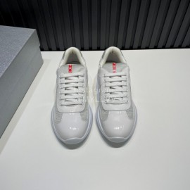 Prada Fashion Cowhide Mesh Casual Sneakers For Men White