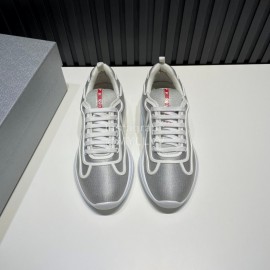 Prada Mesh Cowhide Casual Sneakers For Men White