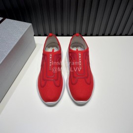 Prada Mesh Cowhide Casual Sneakers For Men Wine Red