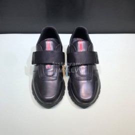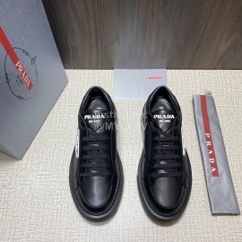 Prada Calf Leather Thick Soled Casual Shoes For Men Black