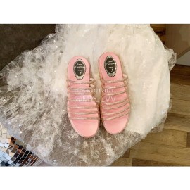 Rene Caovilla Summer Crystal Diamond Belt Slippers For Women Pink