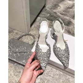 Rene Caovilla Spring Summer Mesh Diamond High Heels For Women Silver
