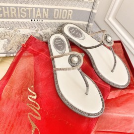 Rene Caovilla Spring Summer New Pearl Sheepskin Flip Flops For Women