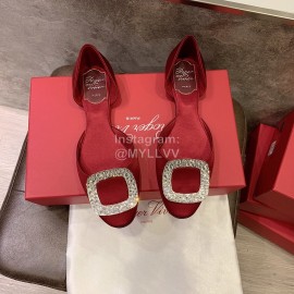Roger Vivier Fashion Diamond Button Silk Flat Heel Shoes For Women Red