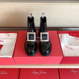 Roger Vivier Fashion Square Buckle Patent Leather Short Boots For Women Black