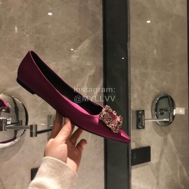 Roger Vivier Fine Rhinestone Sheepskin Flat Heels For Women Purplish Red