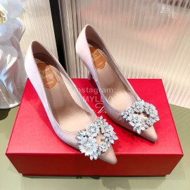Roger Vivier Flower Diamond Buckle Silk Leather High Heels For Women Pink
