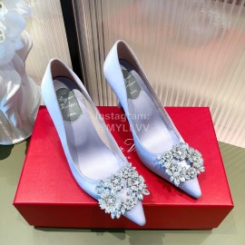 Roger Vivier Flower Diamond Buckle Leather High Heels For Women Silver