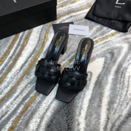 Ysl Fashion Black Sheepskin High Heel Slippers For Women