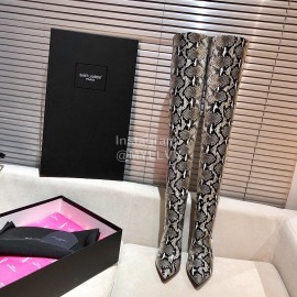 Ysl Autumn Winter Fashion Snake Stripe Pointed High Heel Boots For Women