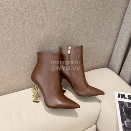 Ysl Autumn Winter Fashion Calf Leather Pointed High Heel Short Boots For Women Brown