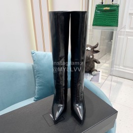 Ysl Fashion Black Calf Leather Pointed High Heel Boots For Women