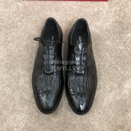 Ferragamo Calf Leather Lace Up Casual Shoes For Men Black