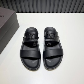 Valentino Black Cowhide Ribbon Cross Slippers For Men
