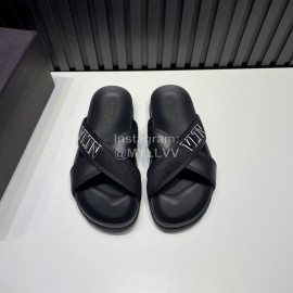 Valentino Cowhide Webbing Cross Slippers For Men Black