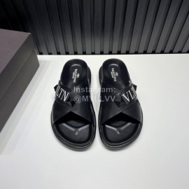 Valentino Cowhide Rivet Thick Soled Cross Slippers For Men Black