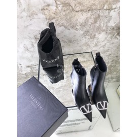 Valentino Autumn Winter New Black Leather Thick Soled Boots