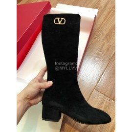 Valentino Autumn Winter New Metal V-Button High Heel Boots For Women Black