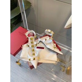 Valentino New Rivet Cow Patent Leather High Heel Sandals White