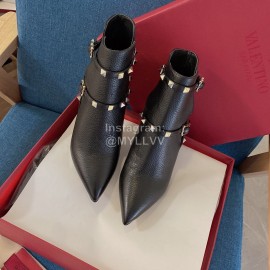 Valentino New Rivet Cowhide Pointed Short Boots For Women