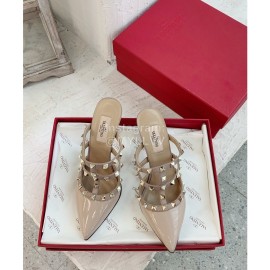 Valentino New Rivet Cow Patent Leather High Heel Sandals Pink